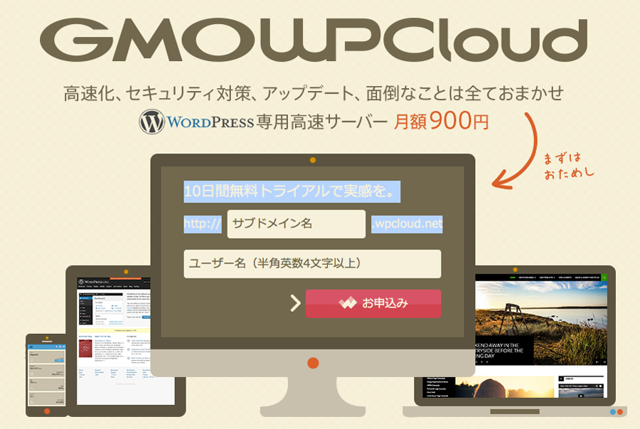 GMOインターネット株式会社|GMO WP Cloud 「GMO WP Cloud」は、WordPressに最適化された専用高速サーバーサービスです。 ■フラッシュストレージ採用でSSDよりも速く、快適な環境を実現! ■突然のアクセス負荷にも自動でサーバーリソースをコントロール、サクサク表示! ■DBの作成まで全てが1-Clickで完了、便利なサイトコピー機能も! ■本番環境と同じステージング環境だって標準装備! ■オリジナルのコントロールパネルで使いやすさ抜群! 公式サイトはコチラ