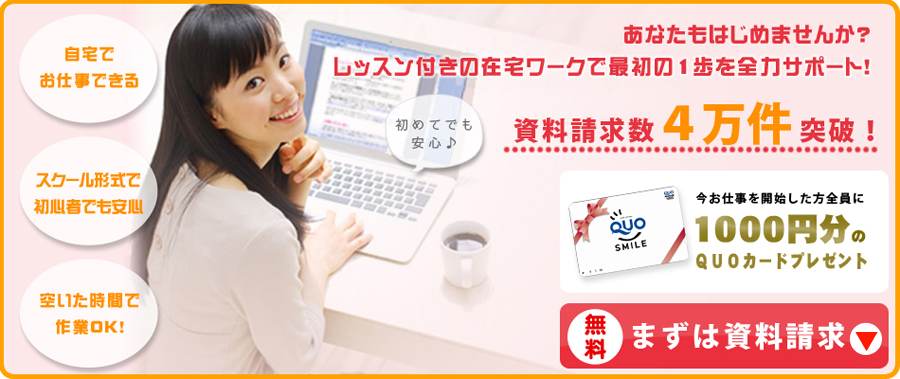 【高配当】在宅ワーク【未経験でも安心在宅ワーク】資料請求 簡単なお仕事から開始可能 コピーして貼り付けの様な簡単なお仕事から開始頂く事が出来ます。 H3お仕事の提供保障! 経験やスキル問わず、お仕事の提供保障があります。スキルが無いから仕事がもらえないという事はありません。 また、事前にお仕事内容を確認頂きますのでご自身のスキルで対応可能であるかご確認頂く事が出来ます。 すぐにお仕事開始可能です! 資料請求後最短5日でお仕事の開始が可能です! ご対応頂いたお仕事は満額現金でお支払致します。 ▼資料請求はコチラから▼