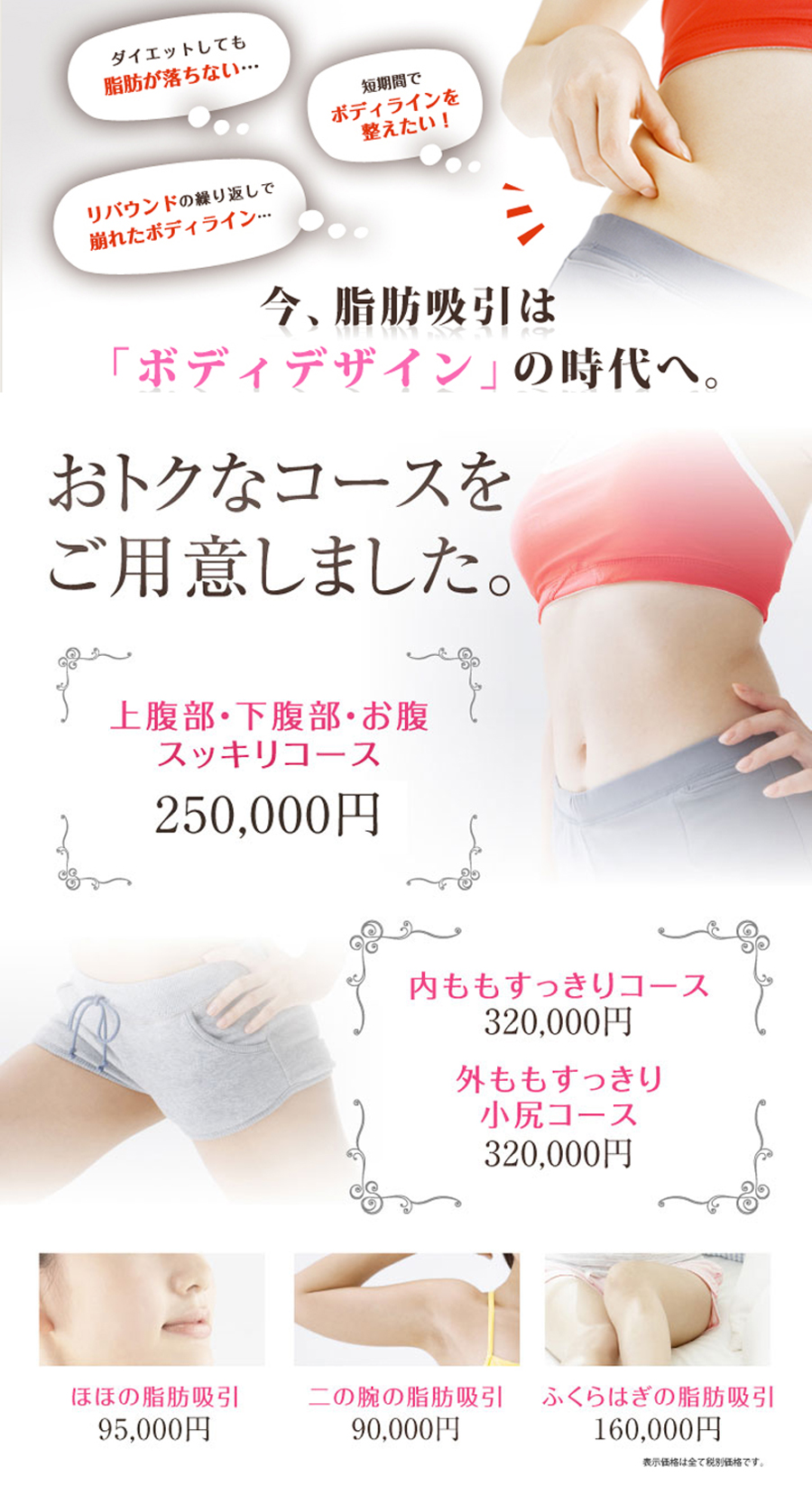 脂肪吸引治療 当院が扱っているVASER脂肪吸引は短時間の施術で痛みを最小限に抑えます。そして皮膚脂肪の90%まで吸引します。初めてのご来店から手術後のアフターケアまで、プロフェッショナルなスタッフが完全サポート。 患者様の理想のイメージを手に入れるお手伝いをします。当院は池袋・品川・横浜・名古屋・大阪・福岡など 全国展開していますのでお気軽にいらっしゃってください。 ▼公式サイトはコチラ▼