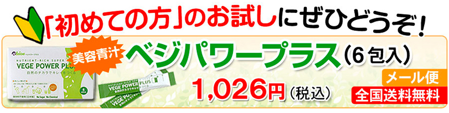 雑誌でも多数紹介された、30代からの美容青汁【ベジパワープラス】 雑誌でも多数紹介された、30代からの美容青汁「ベジパワープラス」 緑の濃い野菜などをそのまま丸ごと超低温で乾燥させて粉砕した非加熱(Raw)で栄養価の高い野菜パウダーです。無農薬の緑色食物、ミネラル豊富な海藻、多肉植物など18種類もの原料で出来ています。気軽にお試しいただける6包入りです。