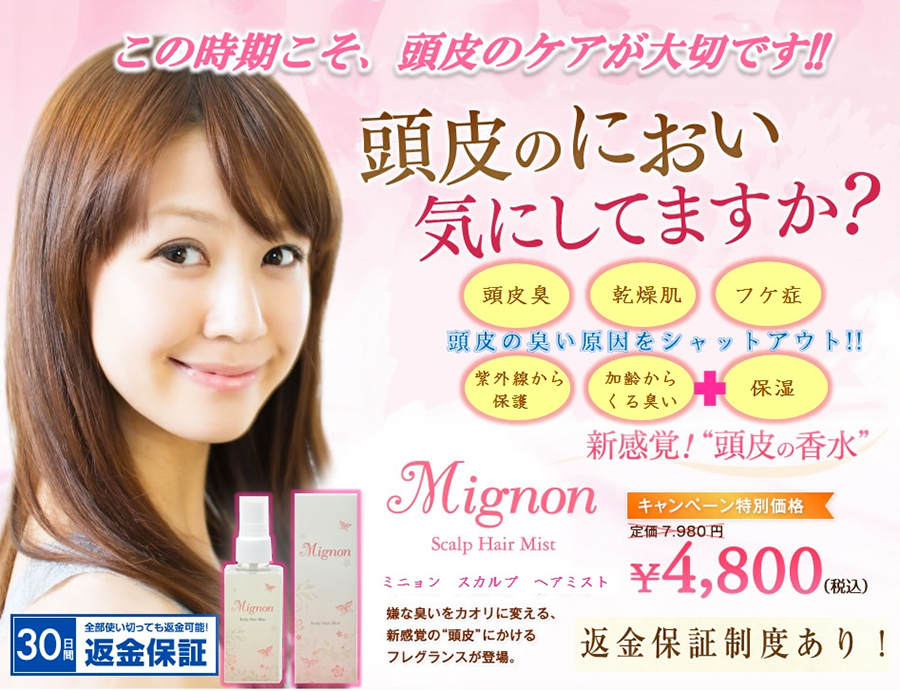 「ミニョン スカルプヘアミスト」を頭にシュッとふりかけるだけ!