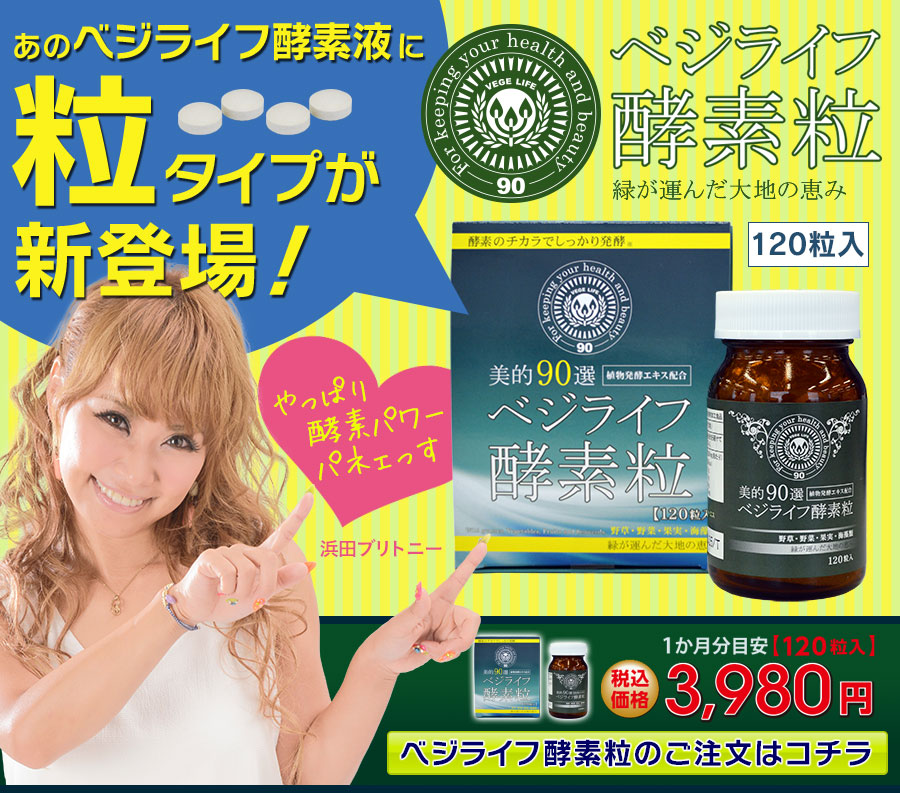 美的90選ベジライフ酵素粒 ★浜田ブリトニーが大成功のベジライフ酵素液★ サプリメントタイプが新登場! 置き換えダイエットのおともに ベジライフ酵素粒 ベジライフ酵素粒が新登場! 飲むだけ簡単、持ち運びも便利♪ ★浜田ブリトニーが大成功のベジライフ酵素液に★ サプリメントタイプが新登場!