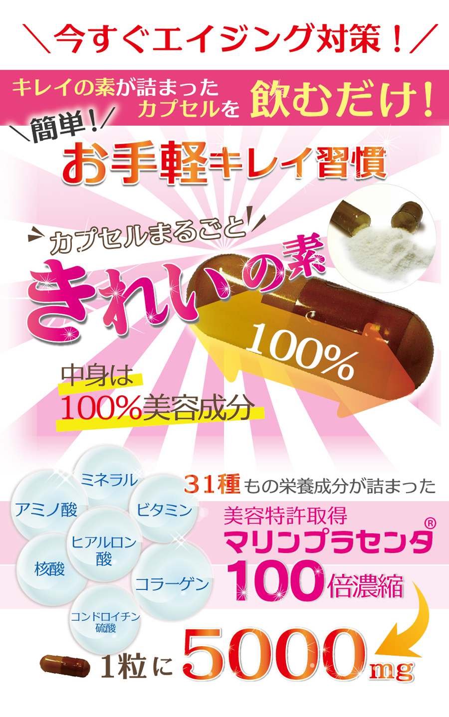 鮭の美容パワー凝縮!100%綺麗の素『プラセンリッチ美容カプセル』